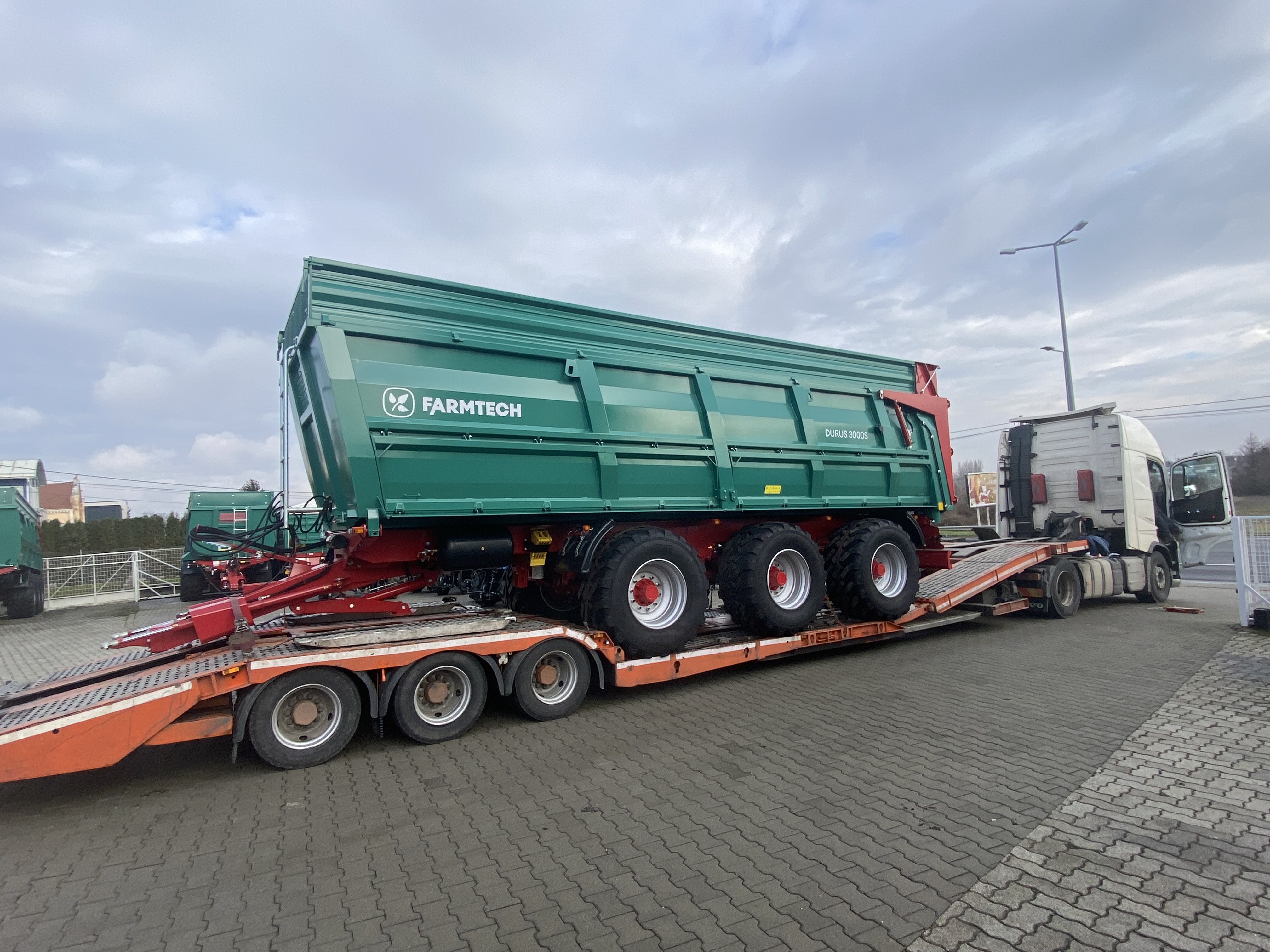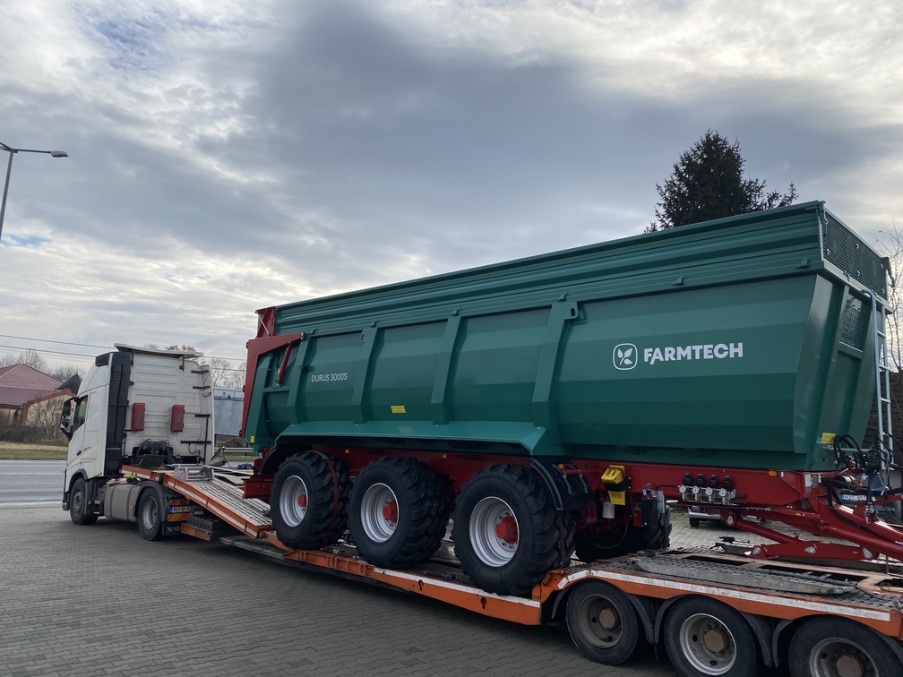 December 14-én csütörtökön indult útjára Romániába új tulajdonosához a nagy trió. Elsőként egy Kobzarenko PBN 40-es átrakókocsi köszönt el telephelyünktől, majd csatlakozott hozzá a DURUS 3000 S ikerpár is, hiszen vevőnk egyből duplázott a FARMTECH termékéből.