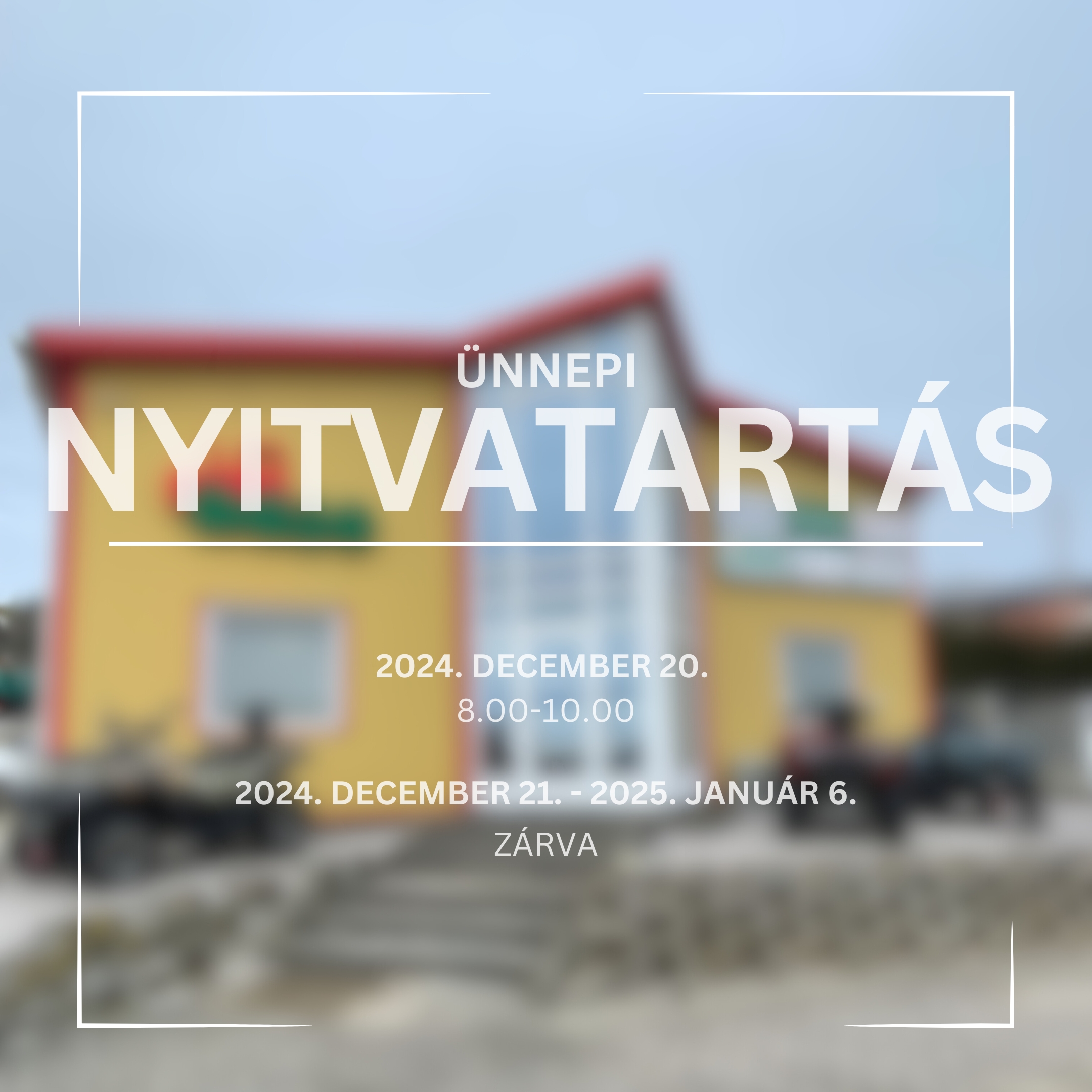 2024. december 21-2025. január 6-ig pedig zárva tartunk, ez idő alatt kollégánk elérhető lesz a +36302262555 telefonszámon.
